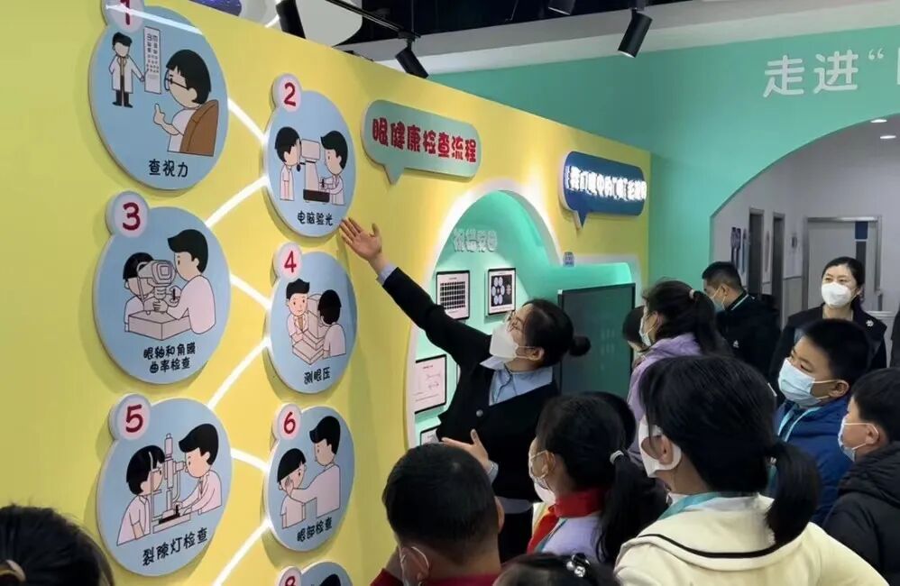 基地以“走进‘睛’彩视界”为主题,基地整体采用清新的蓝绿色系与温暖的黄色系配色,象征清晰视界与我们对儿童青少年眼健康的温暖守护。