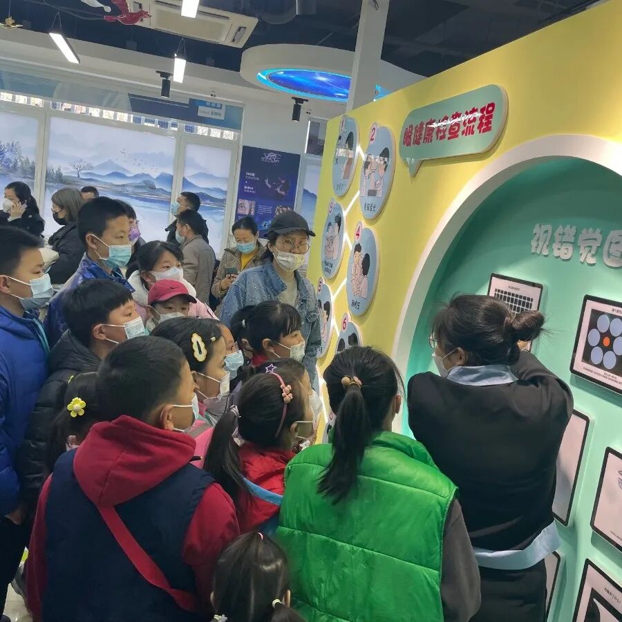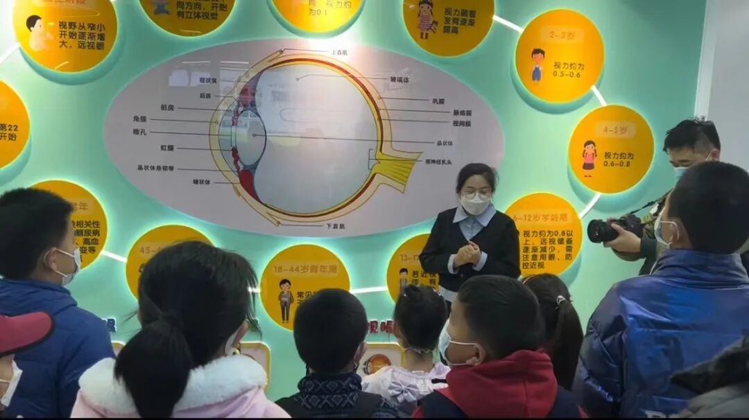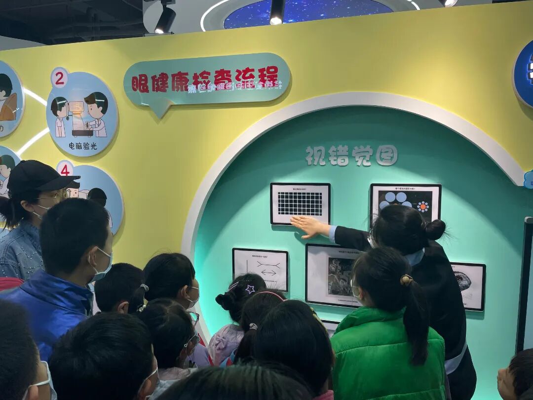 讲座过后,便进入现场参观和互动体验环节,小记者们又来到了视错觉图互动+红绿色盲测试区,并在视光师许晓阳的带领下参观了眼健康知识展板,学习了许多近视相关知识及爱眼护眼知识。