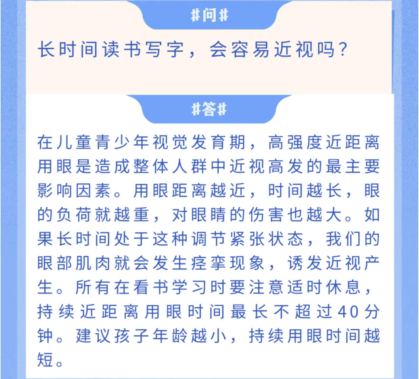 【护眼Q&A】长时间读书写字,会容易近视吗?